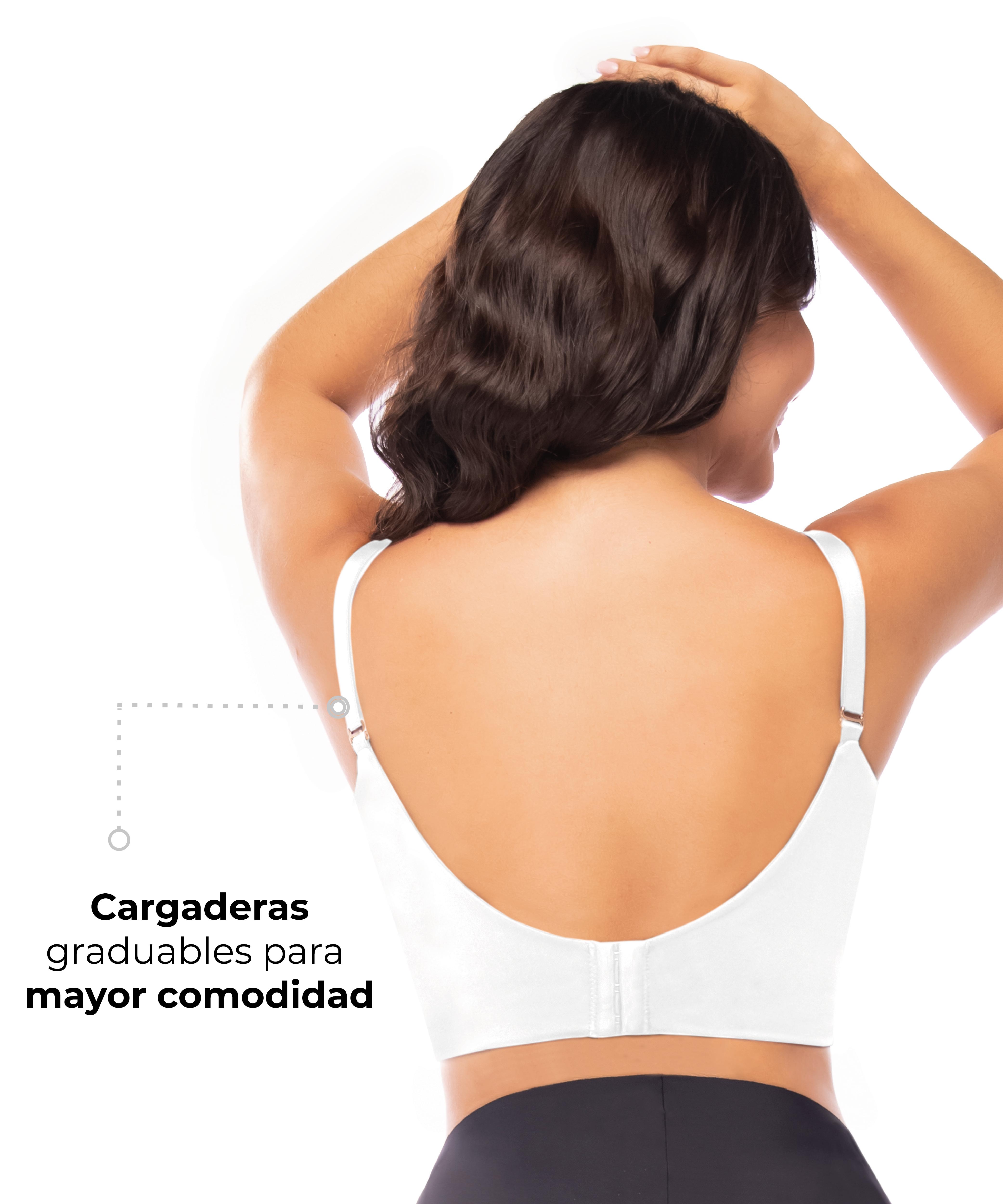 Brasier de alto cubrimiento en copas, sisa y espalda, ideal para busto mediano, grande y muy grande. Ofrece realce suave sin varillas, con copas fijas, livianas y material de compresión en la base que ayuda a disimular rollitos y mejorar la silueta.