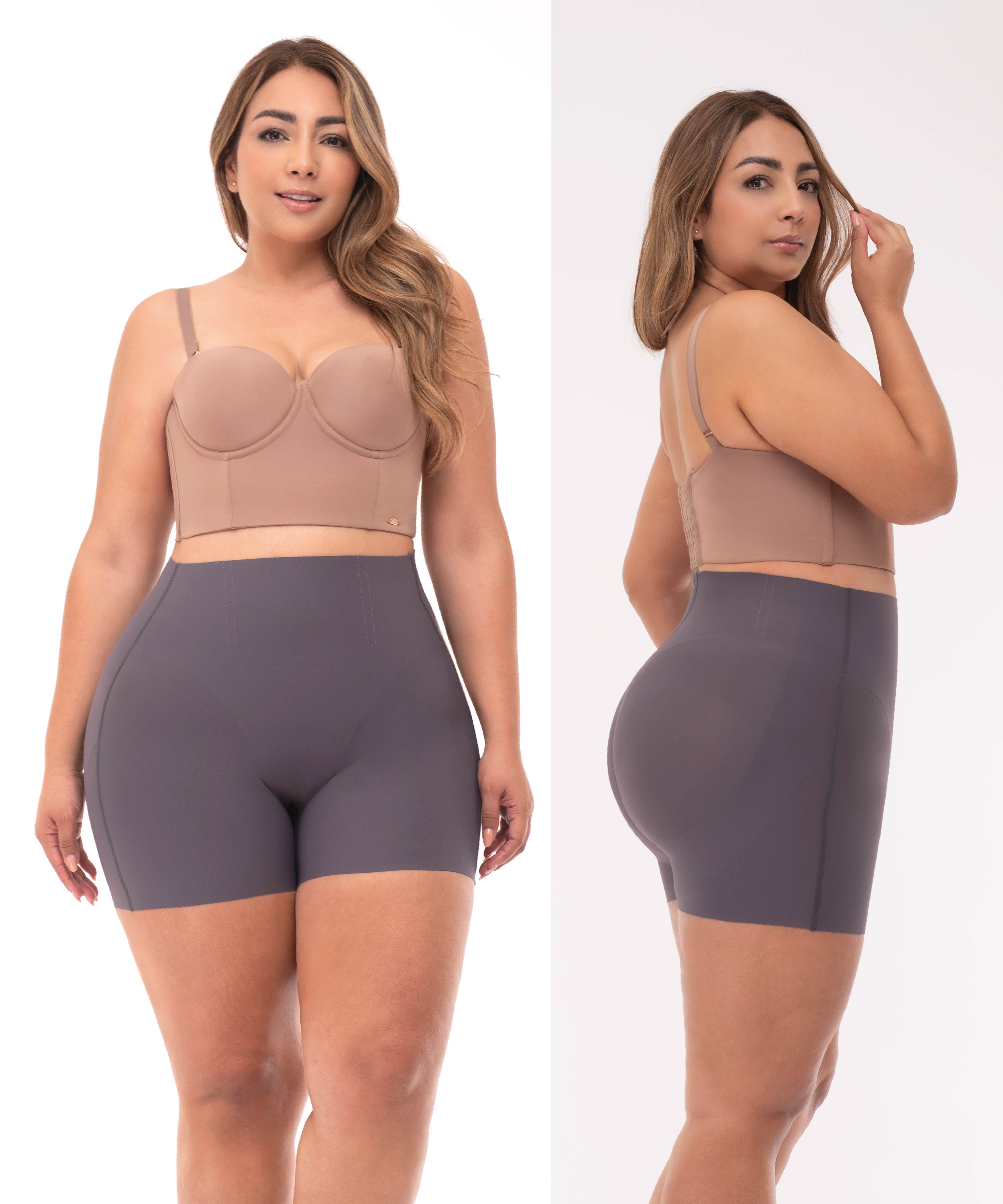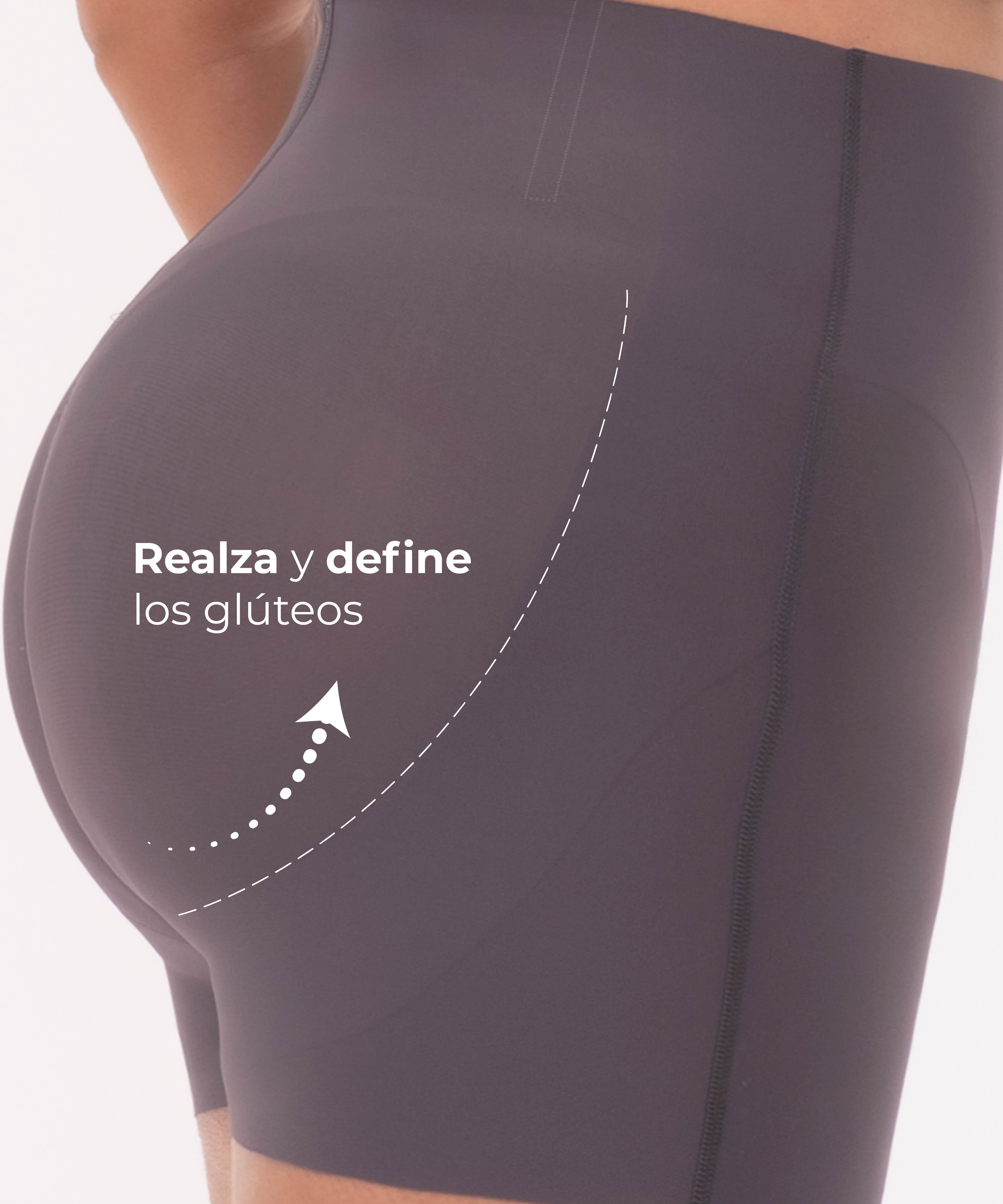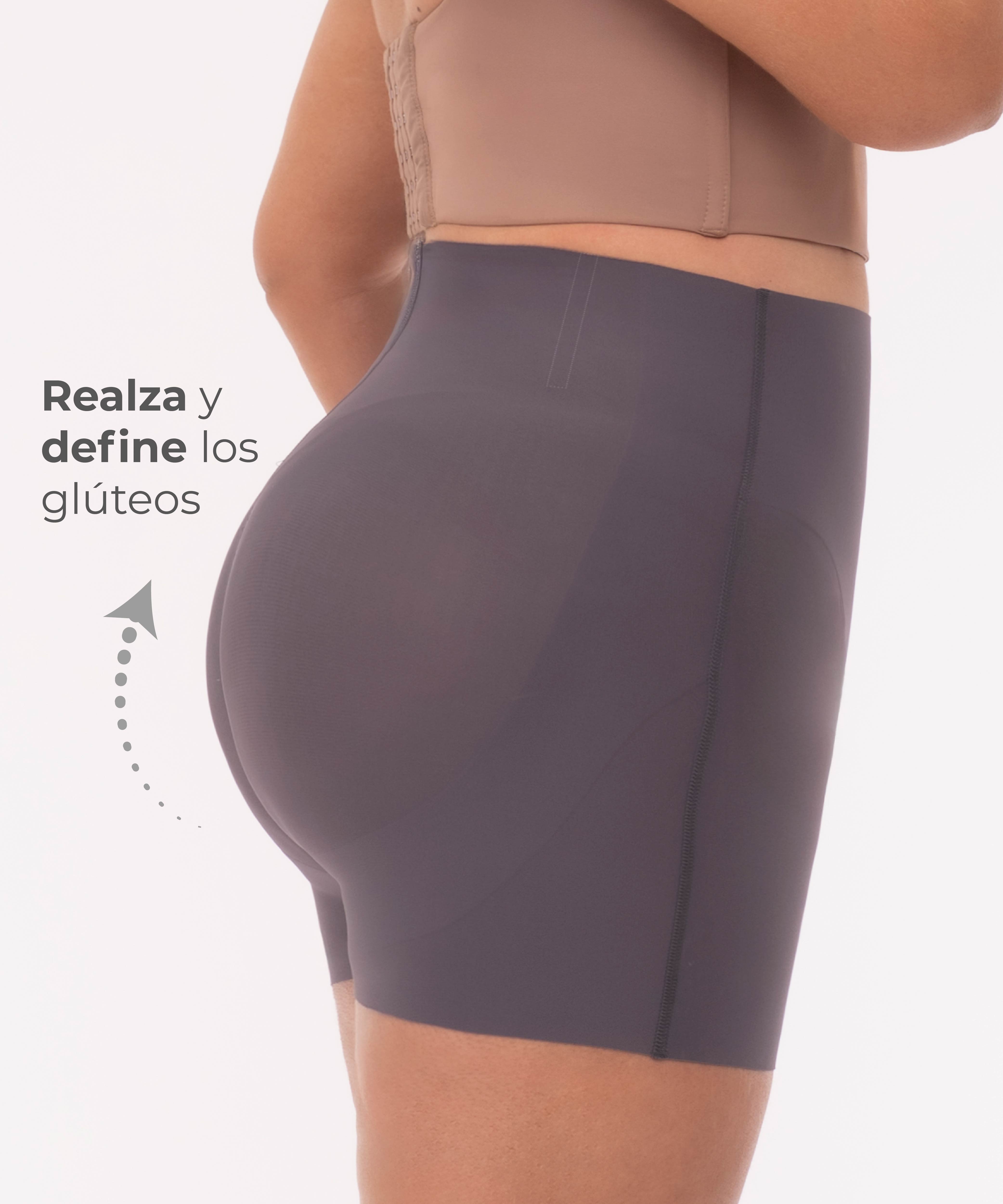 Cuenta con refuerzo abdominal y cola prehormada que realza los glúteos de forma natural. Su largo evita el roce entre las piernas y ofrece un efecto invisible bajo la ropa. Ideal para usar con pantalones, vestidos o faldas. color gris